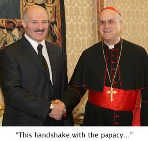 In 2008 Lukashenko was “desperate to boost his reputation ahead of September’s parliamentary elections — including hiring a British public relations firm in March to package his policies in for Western consumption”. [16] Another public relations coup would be recognition by the Pope, and in June 2008 Lukashenko hosted the Vatican Secretary of State, Cardinal Bertone. As Yaroslav Romanchuk, head of the Mises Research Centre in Minsk, observed: